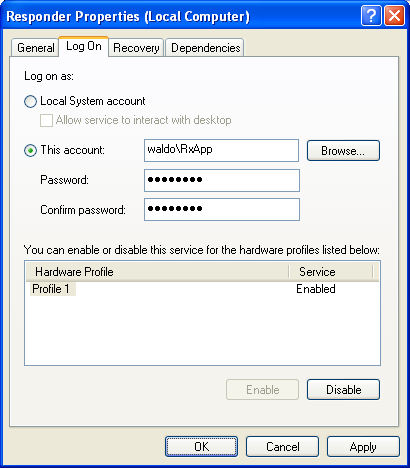 To modify the Responder Service login or see to which user name it is set, follow the instructions below.