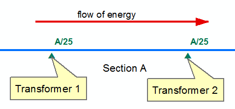 For example, assume this topology (Section A is the portion of the conductor between the two transformers):