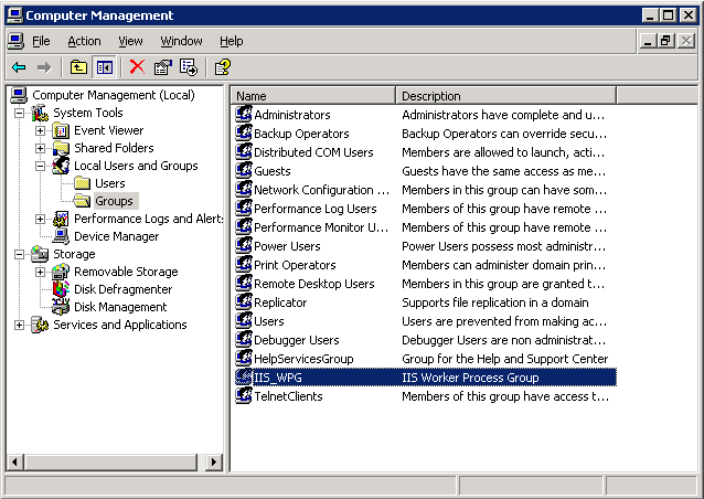 If your web service resides separately from the replication server (distributed implementation), then you will need a domain user that the web service can use to access the network. Follow the steps below to assign this user to the local IIS_WPG group.