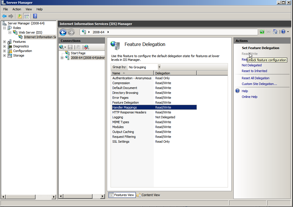 - Select Handler Mappings and click Read/Write from the right-hand pane.