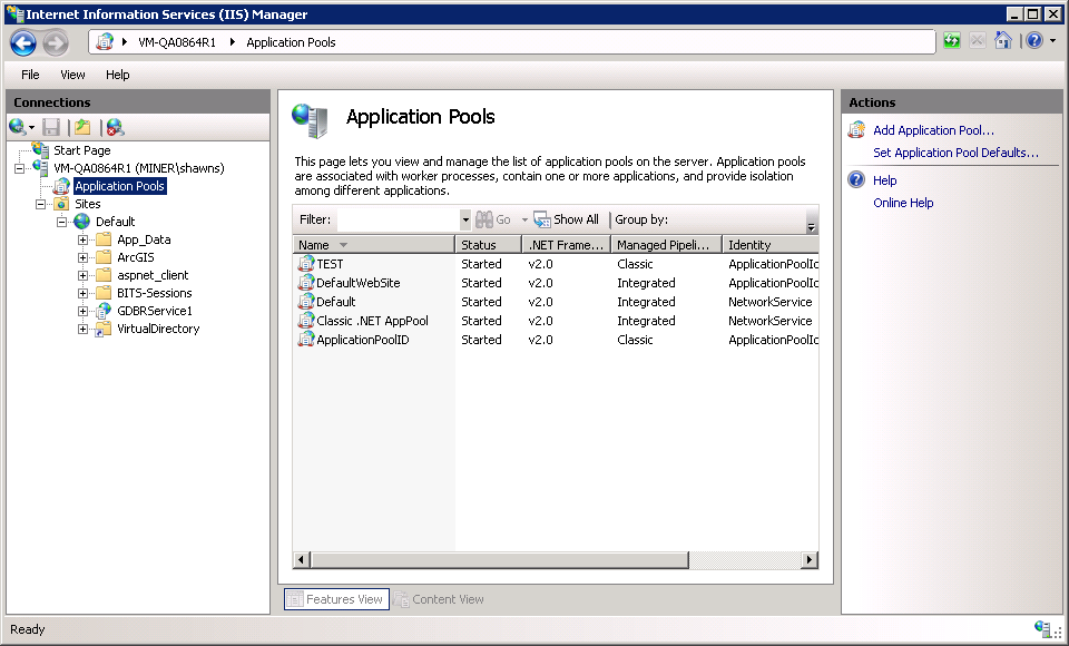 - Right click Application Pools and select Add Application Pool. For more information about adding application pools, refer to Microsoft documentation.