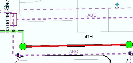 Flags (green squares in above example) are placed at the default junctions to define the start and end points of a conduit availability trace.