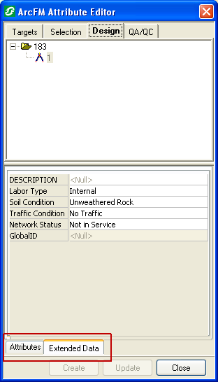 When you have a design open, the Design tab displays two tabs: Attributes and Extended Data (or Metadata), as well as any custom tabs you may have developed. You may indicate which tab is selected by default by using a registry key.