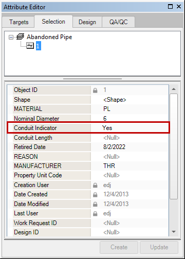 This tool modifies the Conduit Indicator field to represent pipe that can act as casing for a new pipe. It does NOT convert an abandoned pipe to a Conduit System feature and does not utilize Conduit Manager tools.