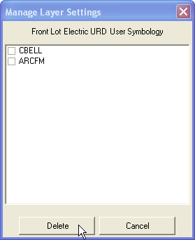 - Click Delete to display the Manage Layer Settings dialog. This dialog displays a list of users for which the default symbology layer group is available. Check the applicable boxes next to the user name.