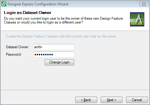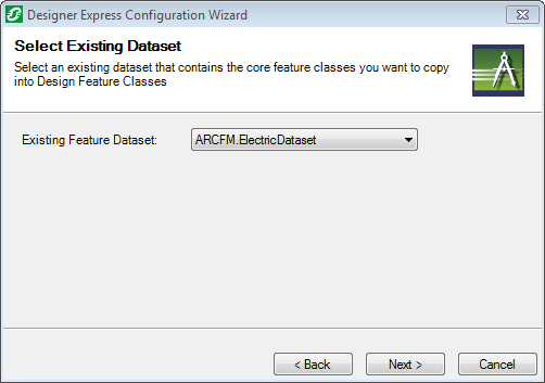 Add DFCs: If you've already created your Express dataset and wish to create additional DFCs, you can use the Designer Express Configuration Wizard as outlined below. When prompted to select an Express dataset, enter the name of your existing Express dataset EXACTLY as it appears in the geodatabase (it is case-sensitive) and without the owner. For example: ExpressGasDataset