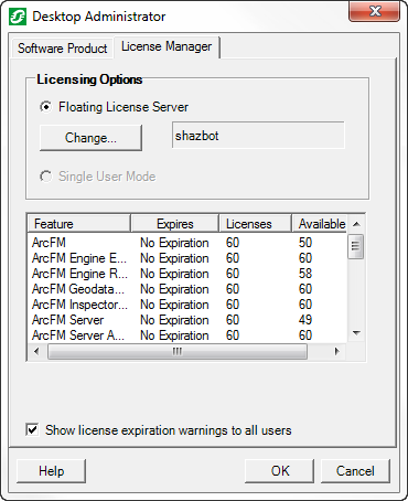 | ArcFM Desktop > License Manager > Desktop Administrator |