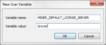 You may use an environment variable to override the license server selected in the Desktop Administrator. To do this, follow the steps below to create an environment variable called: MINER_DEFAULT_LICENSE_SERVER. Environment variables are case insensitive, so it must be spelled exactly as shown, but can be lower case or a mix of lower and upper case.