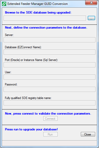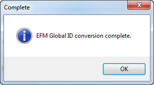 The Extended Feeder Manager (EFM) Conversion tool adds the GlobalID field (new in 9.3.1) to a database. The tool also adds some new fields necessary for 9.3.1 and assigns the appropriate field model names.