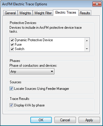 Create the following domain if you want to display the Total RatedkVA for an electric trace. The ArcFM Electric Trace Options includes an option to display kVA by phase for a trace. To access this option, in ArcMap click the Options button on the ArcFM Electric Traces toolbar and select the Electric Traces tab: