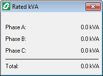 With this option checked, the Rated kVA dialog is shown after each trace. This displays the sum of the rated kVA (by phase) for all transformer units returned by the trace. If transformer units are not present, the rated kVA is calculated from the kVA values of the transformers. If configured incorrectly, the values in this box will all be 0.0.