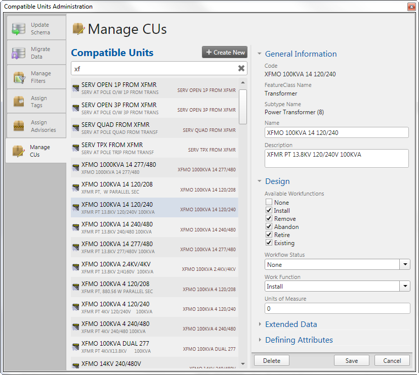 | ArcFM Desktop > Designer > CU Administration > Manage CUs |