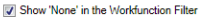 An ArcFM Properties Manager option on the geodatabase allows you to remove "None" from the list of Work Functions in the CU Filter. Clear the checkbox to remove the None option from the Work Function field in the CU Filter. If you give a CU only the work function of None, it will not appear in the CU Filter in ArcMap. This may be used to "retire" CUs that are no longer used. |