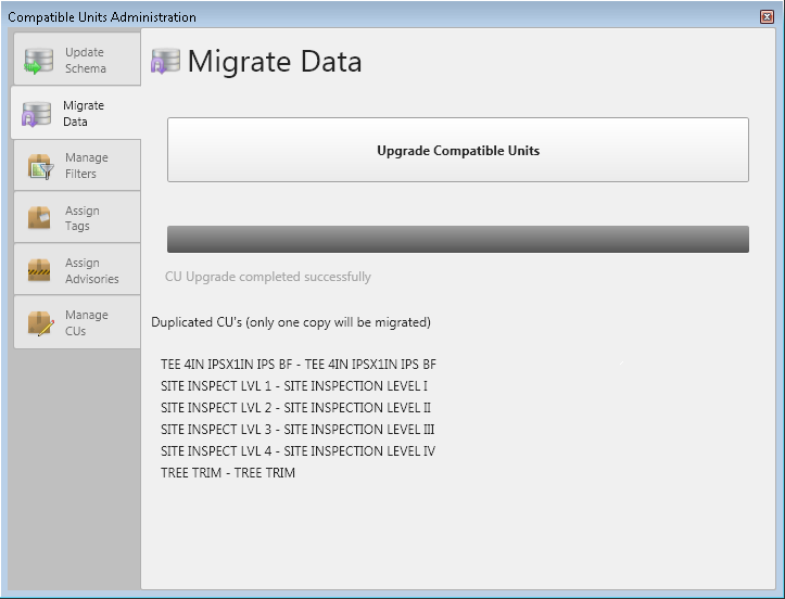 You may skip this step if... If you do not have CU data in your geodatabase, you do not need to execute the Upgrade Compatible Units tool on the Migrate Data tab.