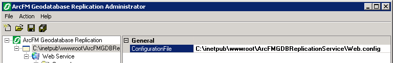 Follow these steps to configure the Replication web service for your geodatabase replica. A configured, read-only sample file is installed at this location: C:\Inetpub\wwwroot\ArcFMGDBReplicationService\Sample.Web.config. This directory also contains an empty version of the Web.config file. Whether you modify the sample or use the empty Web.config file, it MUST have the name Web.config and it MUST reside in the C:\Inetpub\wwwroot\ArcFMGDBReplicationService directory. A replication file by any other name will not be recognized.