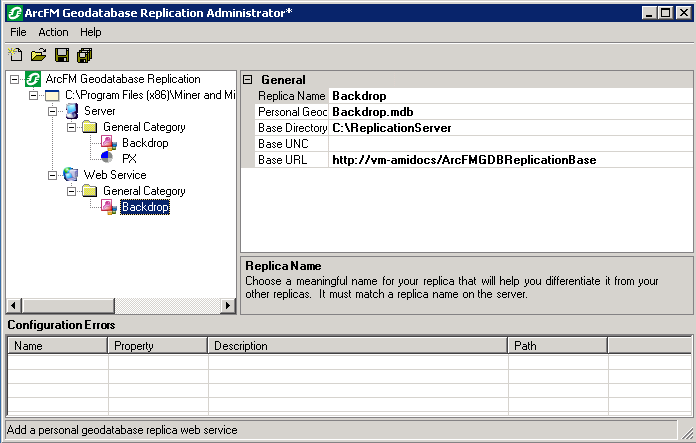 Categories: You may right click the Web Service node and select New > Category to create additional categories. Create as many categories as necessary to organize your replicas (e.g., by zip code). Right click the category and select Rename or enter a new name in the Category Name at the right. This applies to client, server, and web service categories.
