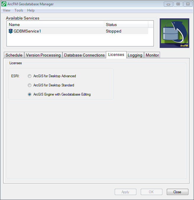 It is recommended that the user has local access to the license for Geodatabase Manager. This ensures that Geodatabase Manager has access to a license even if the network is down. |