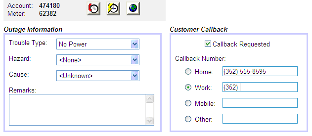 Figure 3. The call entry form as displayed when AllowRxCustomerEdit = “true”. All of the phone number fields are editable and any changes are saved in the RXC table.